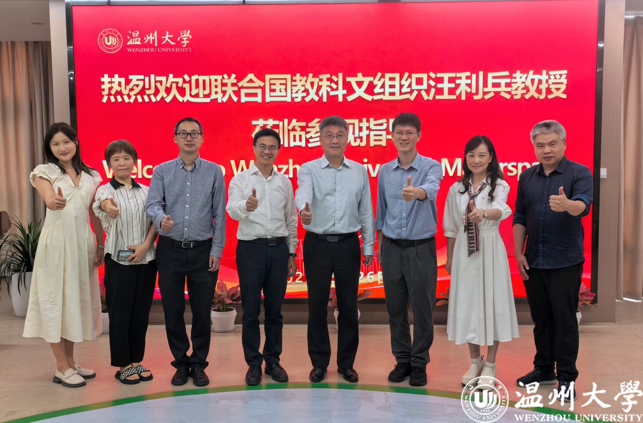2025年5月26日下午,联合国教科文组织汪利兵教授、温州市外事办副主任楼了凡一行莅临太阳集团调研指导。
