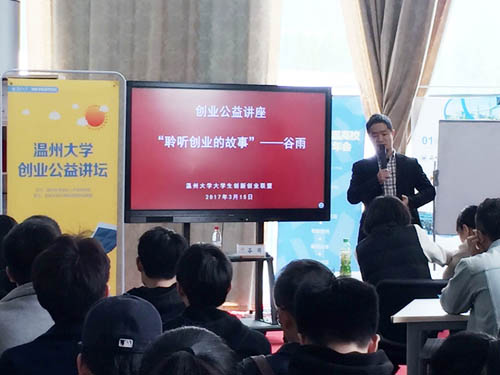 温州捷点信息技术有限公司创始人谷雨先生担任主讲,来自全校各年级的百余名创业意向员工参加了活动。