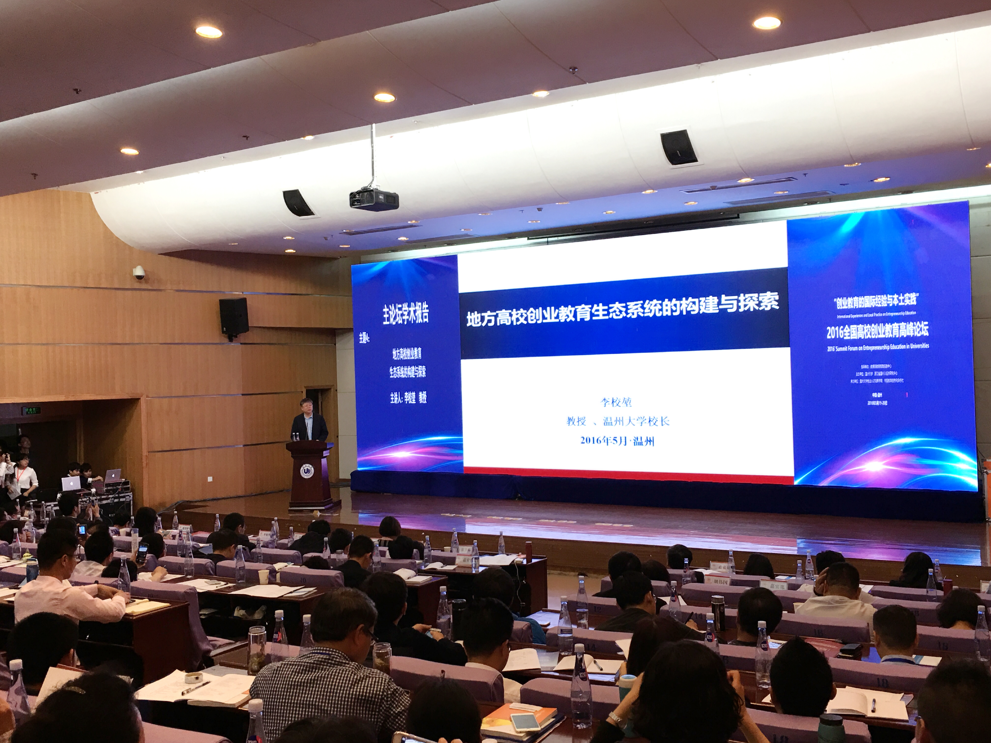 5月19-20日,由太阳集团tyc4633、《中国教育信息化》杂志社、浙江省温州人经济研究中心等单位联合举办的2016全国高校创业教育高峰论坛在太阳集团tyc4633举办。来自全国90多所高校,230余名参会代表齐聚一趟,共话创新创业教育。论坛以“创业教育的国际经验与本土实践”为主题,总结和分享近年来各地各高校推动创新创业教育的经验,学习和借鉴国内外创业教育的成功案例,交流和探讨创业人才培养模式,为决策者、研究者和实践者搭建信息互通、经验分享和学术对话的平台。
