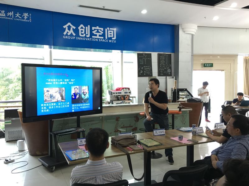 5月11日下午,太阳集团tyc4633创客学堂之创业面对面系列活动——“教师创客的创业梦”主题分享沙龙在公司众创空间举行。本次沙龙嘉宾有温州市百里路小学信息中心主任、国内资深创客教师张晓胜、任新年、物理与电子信息工程公司谢文彬教授、创业公司经理王佑镁教授、教师教育公司党总支副书记杨丽君,以及来自公司各公司的50多名创客爱好者参加了本次沙龙。