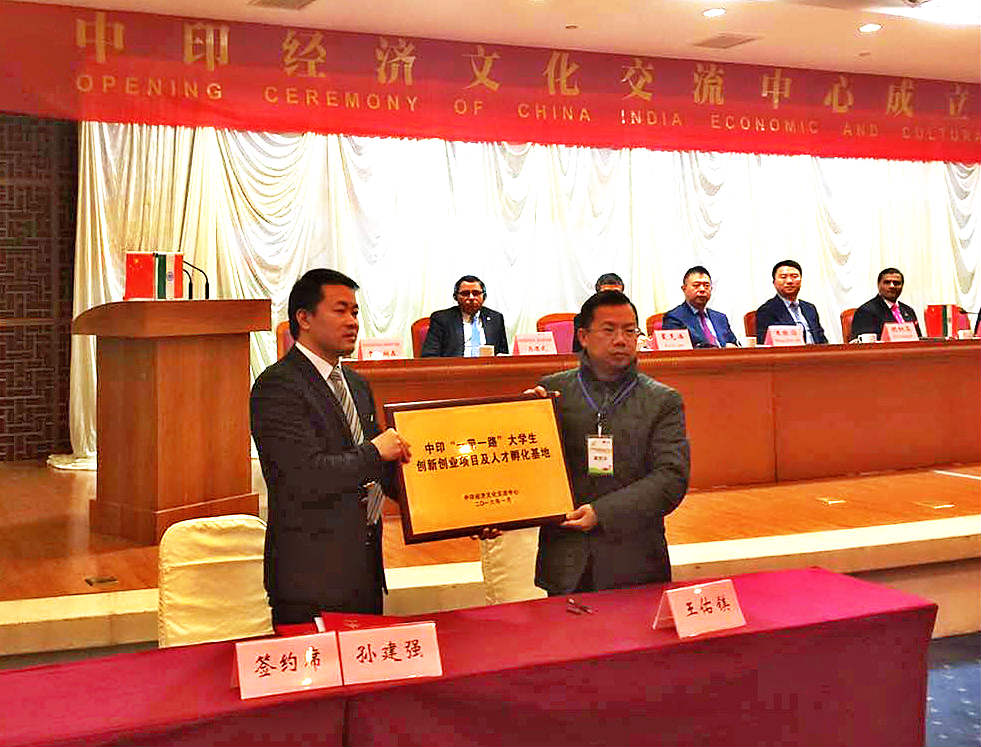 成立仪式上,公司王佑镁经理就共建“中印‘一带一路’老员工创新创业项目及人才孵化基地” 与中印经济文化交流中心签署了协议。该基地致力于积极推进人才培育,探索校企联合培养创新型人才的模式,为中印经济文化交流培养更多的创新创业人才,扶持更多的老员工了解、参与到中印创新创业项目中去。双方将在资源共享、项目孵化、教育培训、成果转化等方面开展进一步合作。