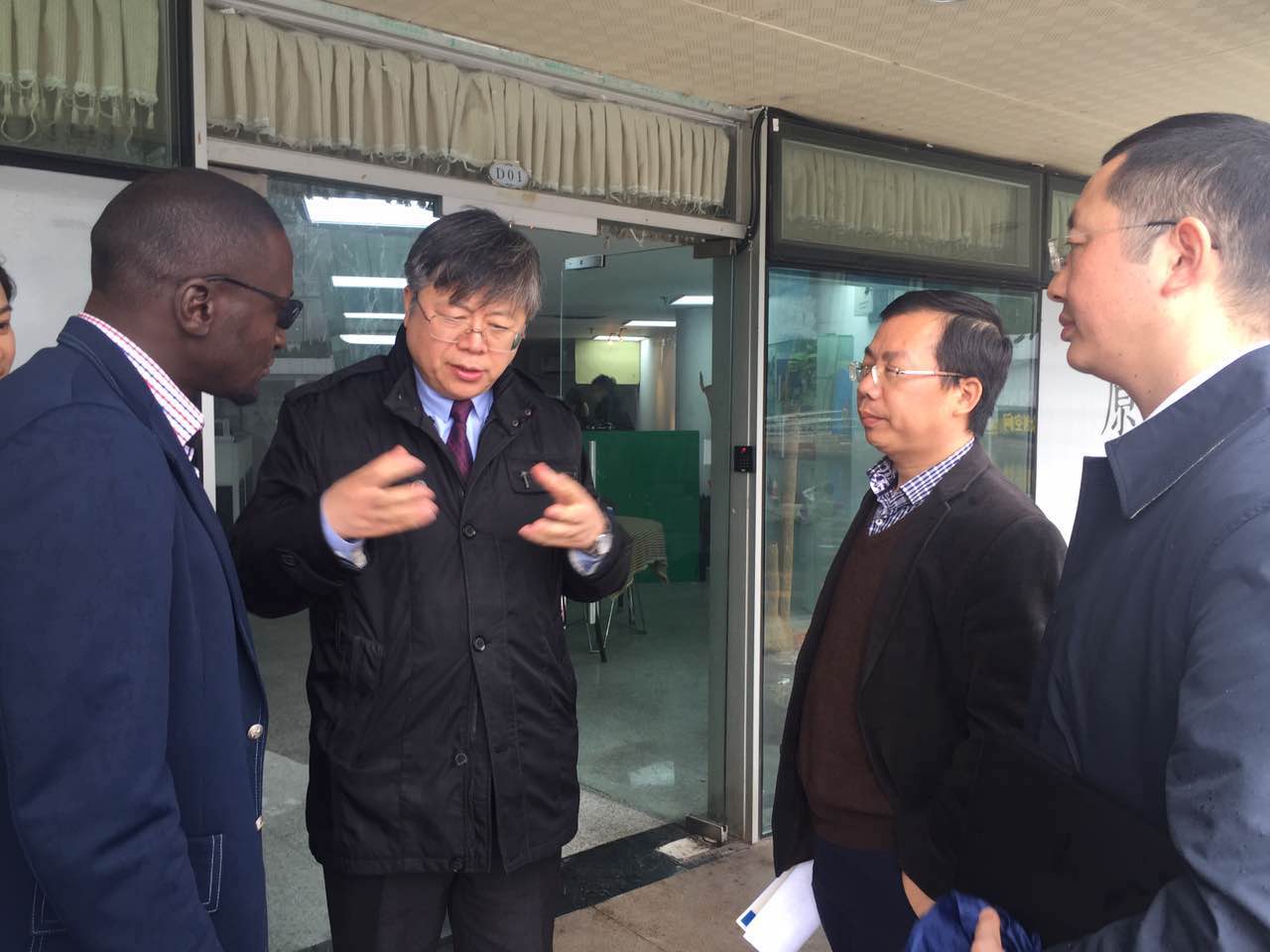 3月23日,津巴布韦卫生部官员Joe一行来访公司,在太阳集团tyc4633董事长李校堃的陪同下来到老员工创业园参观交流。