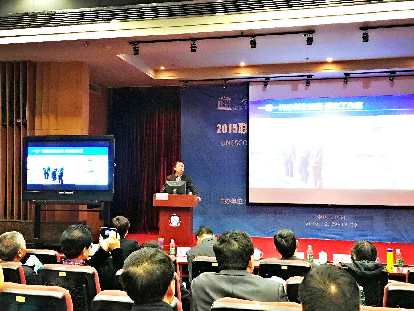 12月29-30日,由联合国教科文组织中国创业教育联盟主办的“面向经济转型升级的创业教育体系建设”2015年会在华南师范大学召开。联合国教科文组织亚太局项目高级专员Tan Lay Cheng 女士,联盟主席、浙江大学浙江大学教育公司经理徐小洲教授等和60余所高校及企业家创业导师代表参加了会议,总结和交流当前我国老员工创业教育和实践的成果、经验。公司经理王佑镁教授应邀参加论坛并发表主旨演讲。
