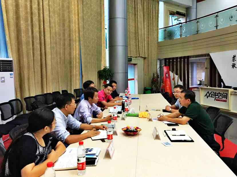 喻擎苍一行首先参观了公司老员工创业园,并对部分员工的创业项目进行了详细了解。随后,公司与来访客人举行了座谈,团委与教育处相关负责人也应邀参加。座谈会上,王佑镁就公司创业教育机构设置及运行模式、创业教育人才培养模式探索、公司创业实践、实训体系建设等方面进行了较为全面的介绍介绍。喻擎苍处长对公司创业教育的做法表示认同,特别对公司在人才培养实验班上的大胆创新表示高度赞赏。随后,双方就进一步加强交流合作的方式方法进行了深入探讨。