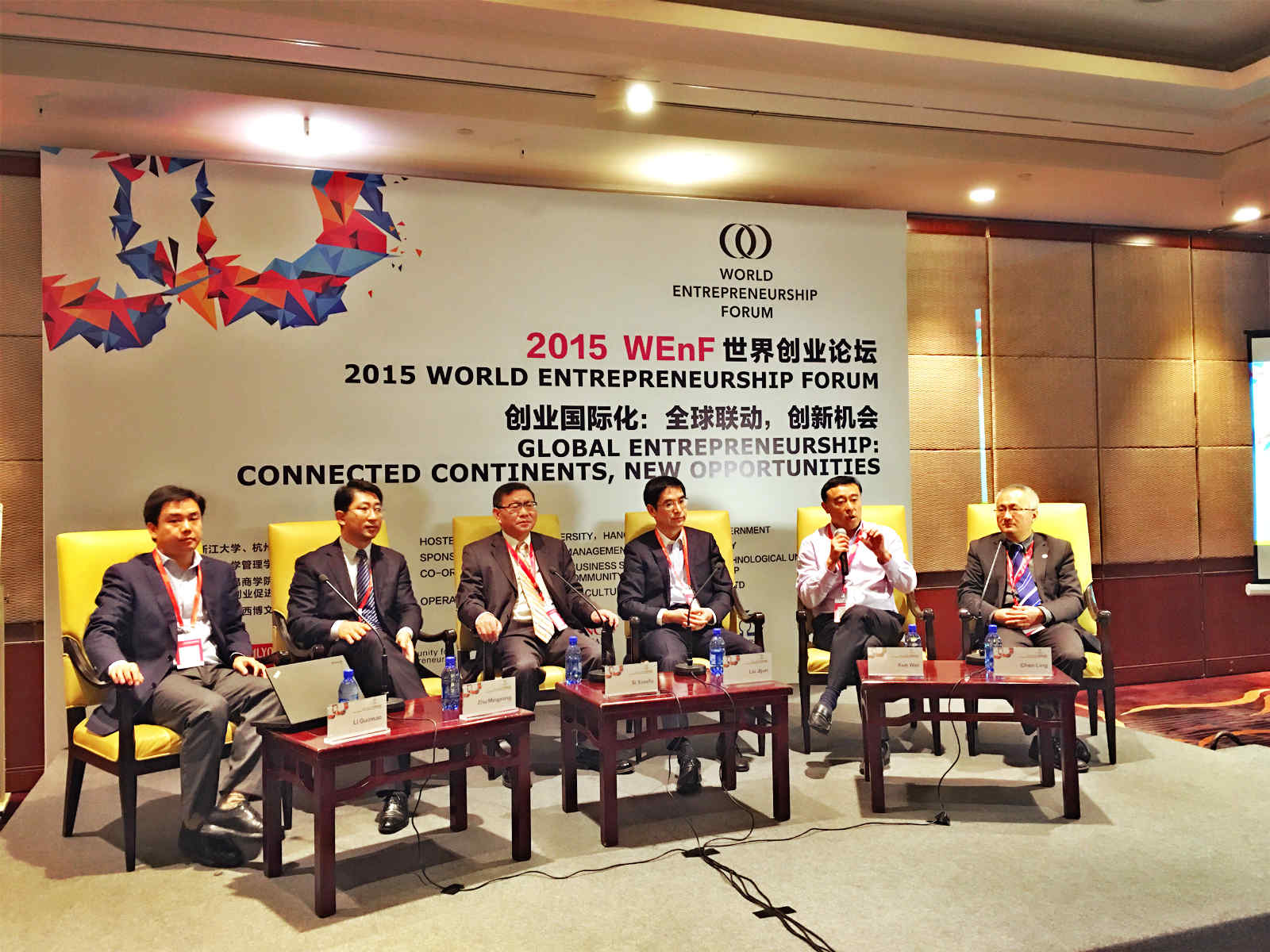 10月20-21日,以 “创业国际化:全球联动,创新机会”为主题的第八届“世界创业论坛(WEnF)”全球年会在杭州隆重举行,来自世界各地的500多名企业界、政界、学界以及相关人士,齐聚杭州,共话全球创新与创业。浙江大学董事长吴朝晖、杭州市副市长陈红英、世界创业论坛执行主席Tugrul Atamer出席并分别致辞。大会设定了主题演讲、全球创业大赛、创业大师工作坊、青年创业者社交之夜、世界企业家颁奖晚宴等活动。公司薛伟副董事长应邀参加,并发表题为“立足区域文化,构建创业教育生态系统”的主旨演讲。