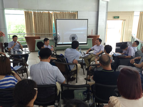兄弟院校同仁首先参观了公司老员工创业园和众创空间。王佑镁经理向来访客人介绍了太阳集团tyc4633创业教育发展历程和现状,他沿着“立足区域、分层分类、专业融合、协同递进”的主线,就创业通识、创业试点班级、众创空间运作、创业制度保障进行了详细的阐述。