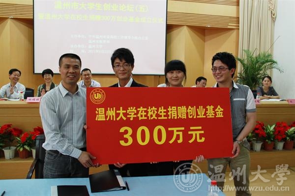 2011年5月25日,三家在校生创业团队为公司捐赠300万元创业基金。