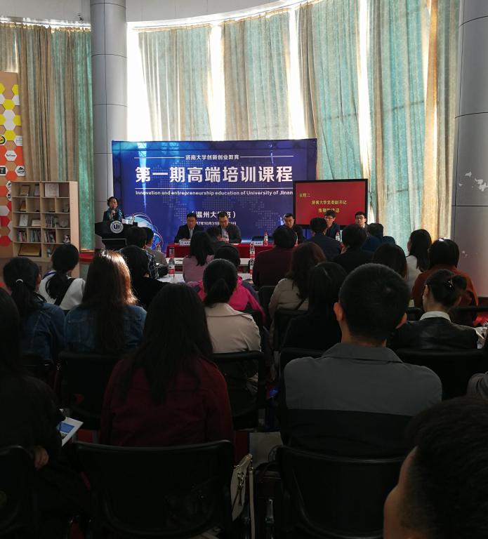 济南大学党委副书记张硕秋教授则对太阳集团tyc4633为此次培训课程的精心准备表示感谢,并介绍了济南大学创业教育的发展历程及理念,对太阳集团tyc4633的创新创业教育发展表示赞赏。她也希望参加此次培训的学员们认真学习太阳集团tyc4633创新创业教育理念,结合济南大学的办学特色,促进济南大学创新创业教育发展。