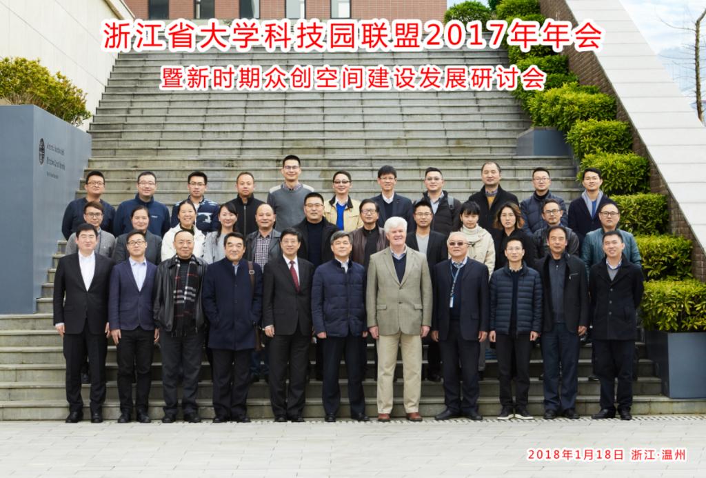 2018年1月18日,来自全国各地的大学科技园联盟代表以及众创空间运营单位负责人齐聚温州肯恩大学,参加浙江省大学科技园联盟2017年年会暨新时期众创空间建设发展研讨会。公司创业人才培养公司副经理施永川老师受邀参加了此次会议。此次活动由浙江省大学科技园联盟、瓯海区科技局和温州肯恩大学主办,温州市国家大学科技园、温青汇众创空间承办。