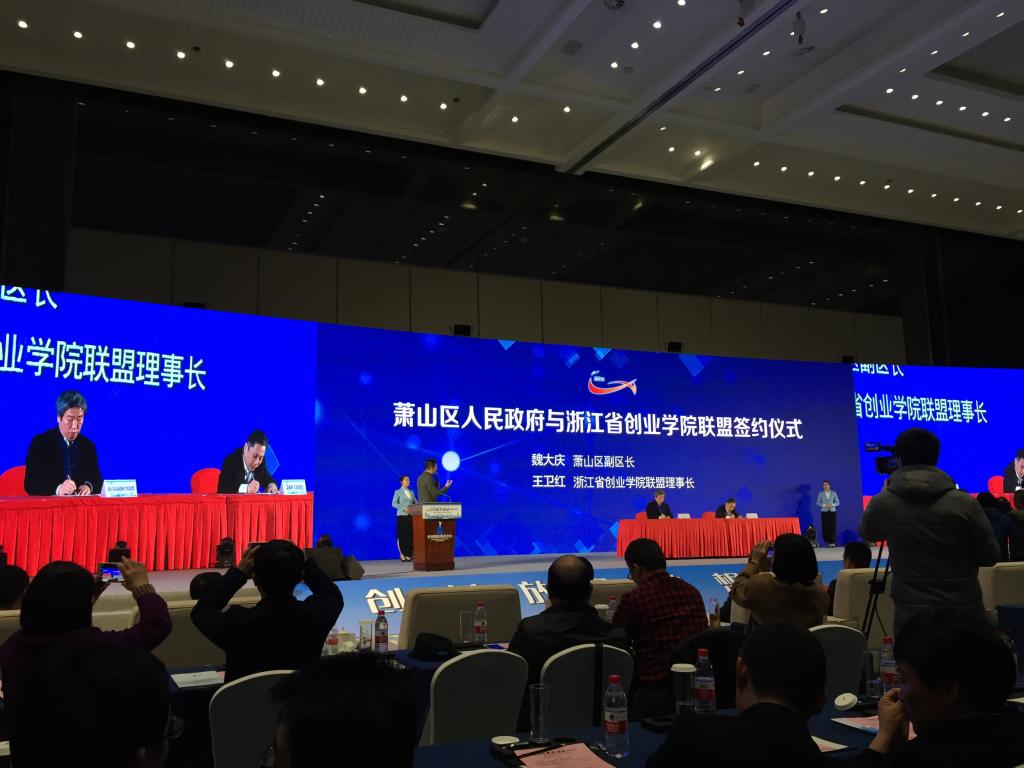 会上,杭州市萧山区人民政府与浙江省创业公司联盟签订了战略合作协议,双方将在成果转移转化、老员工创业实践、高校教师创新创业实训、校企合作等方面开展合作,贝贝网创始人兼CEO张良伦,创业邦天使基金合伙人、投融资董事总经理方平潮,杭州华澜微电子科技股份有限公司总经理骆建军等做了主旨演讲,向老员工做了创业经验分享。会后,近百名全省高校创业公司经理和老师代表们考察了杭州湾信息港,深入了解萧山创新创业环境。