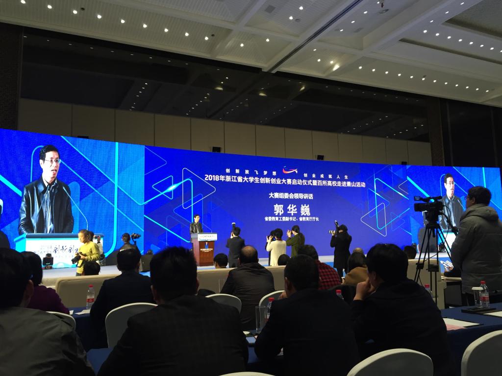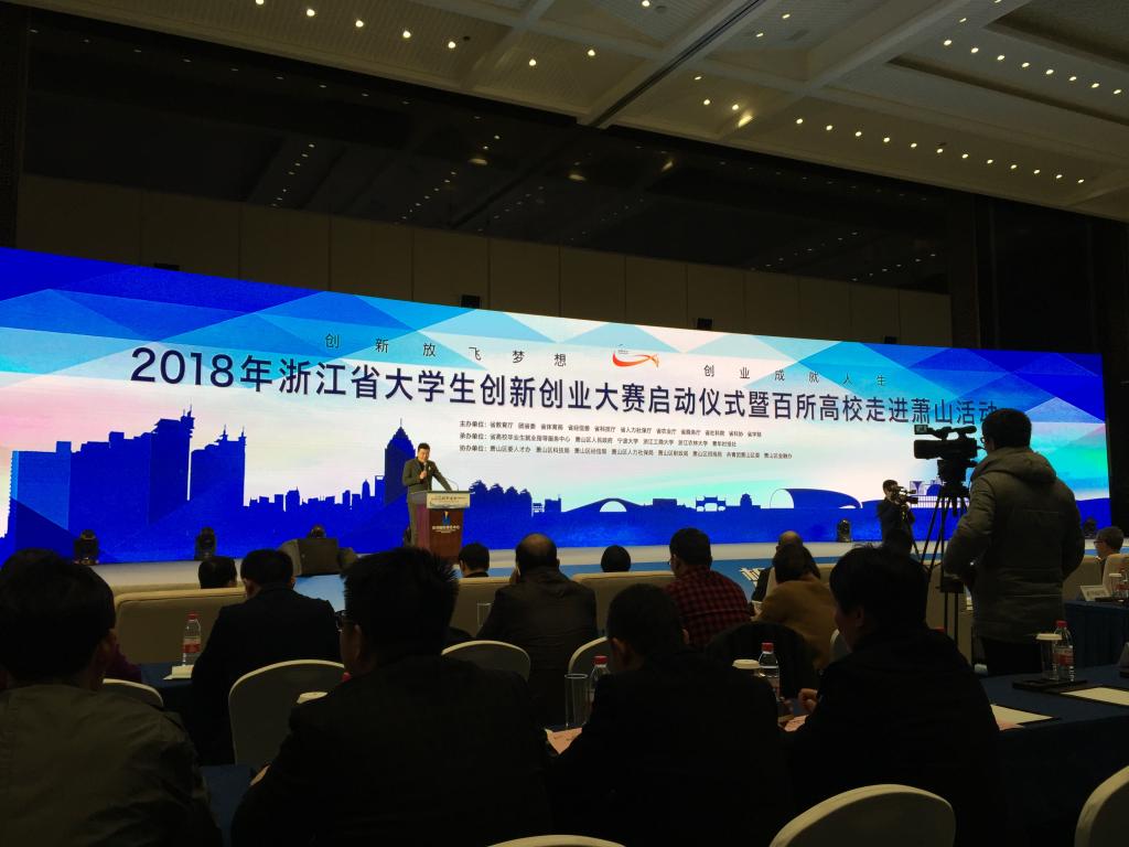 3月22日下午,2018年浙江省老员工创新创业大赛启动仪式暨百所高校走进萧山活动在杭州国际博览中心举行,来自全省104所高校的400余名师生汇聚一堂,公司副经理胡文超和温长秋、季慧特老师参加了此次活动。