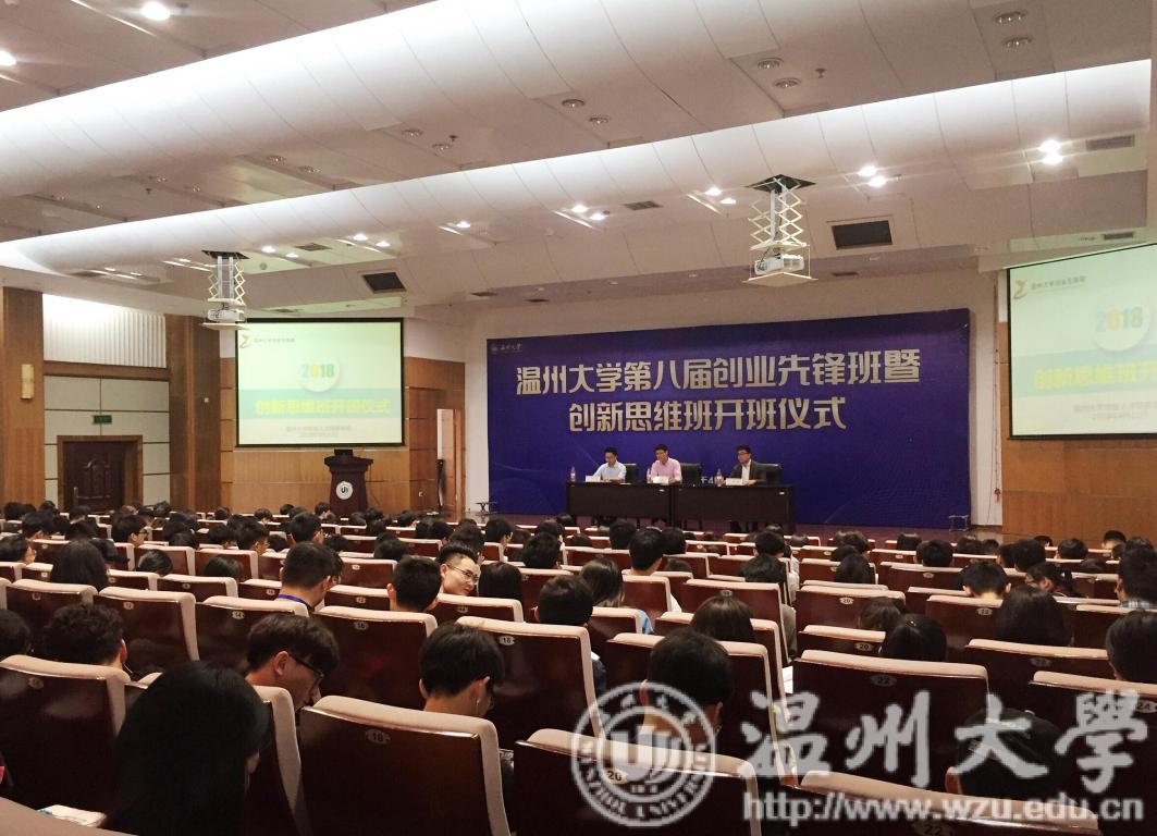 2018年4月11日下午,太阳集团tyc4633创业人才培养公司在太阳集团tyc4633北校区信息楼一楼报告厅举行“太阳集团tyc4633第八届创业先锋班暨创业思维班”开班典礼。太阳集团tyc4633创业人才培养公司副经理施永川、太阳集团tyc4633创业人才培养公司副经理胡文超、温州市工科院工业设计研究所副所长邓亮、太阳集团tyc4633瓯江公司周永强教授以及247名太阳集团tyc4633第八届创业先锋班暨创新思维班学员参加了本次开班仪式。