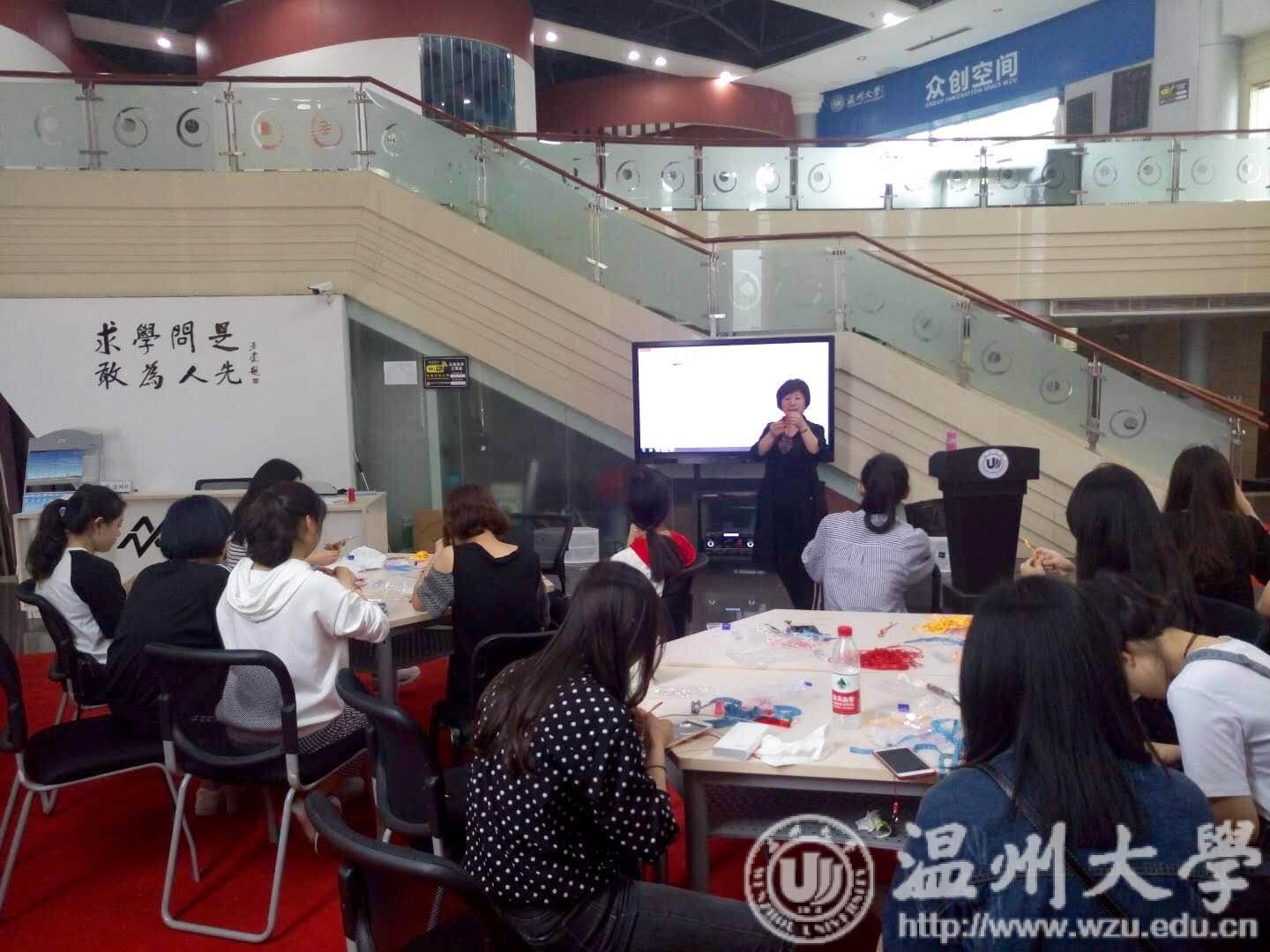 4月14日下午,公司在太阳集团tyc4633老员工创业园众创空间一楼举行“创客学堂”系列活动之“汝意”创意编织体验课,活动邀请了汝意饰品工作室创始人魏静教授现场授课。