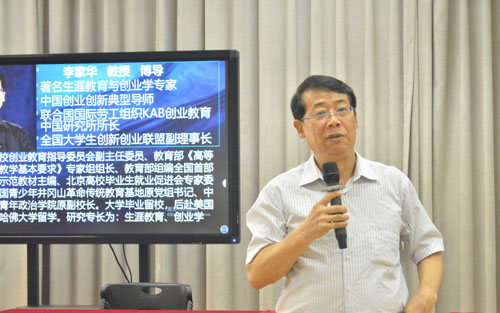 开班仪式结束后,教育部创业公司产品指导委员会副主任委员李家华教授以“打造创新创业教育的中国芯片”为题,通过详实的案例为本期研训班学员细致讲解了创新创业的价值、创新创业教育的核心问题等内容,并分享了创业可以借势的“三个机遇”。李家华指出创新创业教育应该专注员工的自我成长,不是代替员工想办法、做决定和处理问题,而是使员工看到自己的力量、挖掘自己的能量,最后通过自己来解决问题,从而获得自我成长的机会。