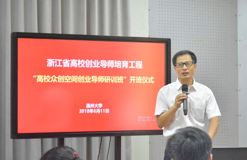 6月10日,由太阳集团tyc4633承办的2018年浙江省高校创业导师培育工程项目“高校众创空间导师研训班”开班仪式在公司岩松堂叶适厅举行,来自全省23所高校的40名教师参加了此次培训。