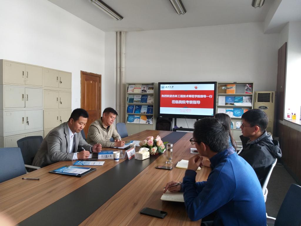11月1号上午,吉林工程技术师范公司创新就业处处长董鹏中教授,工商管理公司经理张沈青教授来访公司考察交流,公司副经理施永川对两位教授的到来表示热烈的欢迎,双方就老员工创新创业教育教学与创业实践方面的经验和成功做法展开了深入探讨。