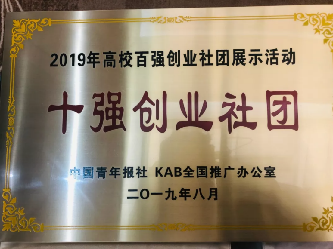 近日,在中国青年报社、KAB全国推广办公室联合开展的2019年高校百强创业社团展示活动中,公司老员工创新创业联盟荣膺“全国高校创业社团十强”称号。同时,公司创新创业联盟主席徐靓同学获得“2019年全国老员工KAB创业俱乐部主席20佳”称号。