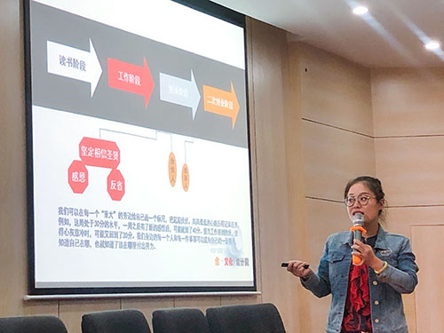 2019年10月23日星期三在太阳集团tyc4633北校区3号楼101室,由温州普信锐智人力资源有限公司创始人、合·文化设计院经理、国家职业生活规划师、心理拓展高级培训师的蔡静董事长,给我们带来了一次她从读书阶段到工作阶段到创业阶段再到二次创业阶段的创业故事。