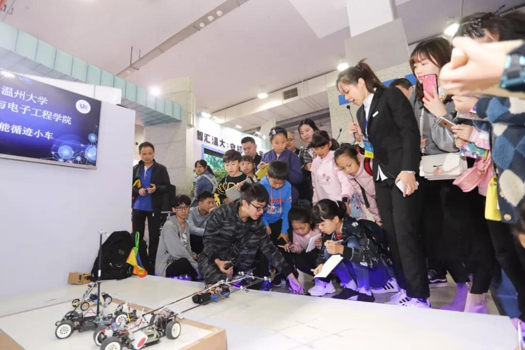 11月15日,2019浙江•温州创业创新博览会在温州国际会展中心开幕,太阳集团tyc4633作为院校创意展区的参展单位之一,以“智汇温大:守初心 创未来”为主题,规划了“智能科技”“文化创造”两大模块,汇聚了27个高科技含量的创新创业项目参展,内容涵盖制造、化工、教育、建筑、文创等多个行业领域,既有像“智能解耦式电动伺服制动助力系统”“低压电器数字制造孪生车间及系统”“全自动海水淡化净水器”等以“高精尖缺”为导向的自主创新科技项目,也有像“数字三维写意水墨山水动画”“柔性电池”“全自动家用洗鞋机”“LED创意灯”等贴近生活的“接地气”文创项目,吸引了众多市民前来参观,更有一批批中小学研学团组团来学习。