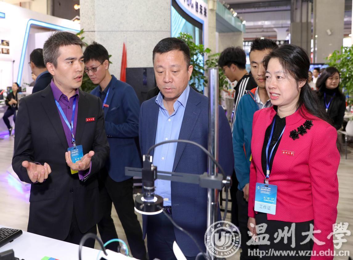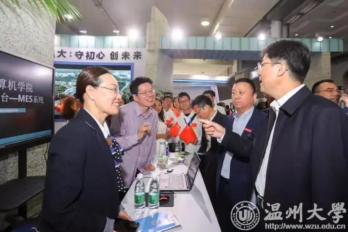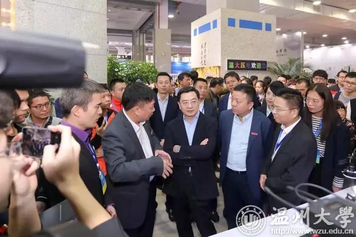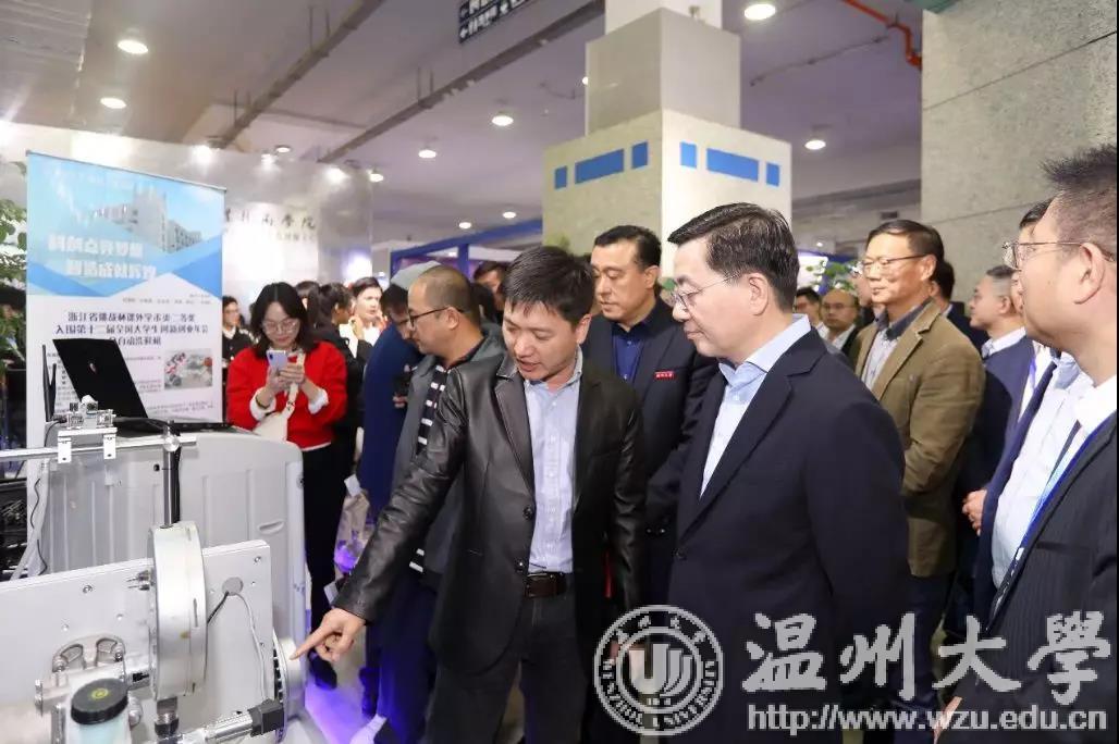 展会期间,浙江省委常委、温州市委书记陈伟俊,温州市委副书记、市长姚高员先后莅临温大展馆,点赞公司师生的创新创业项目。