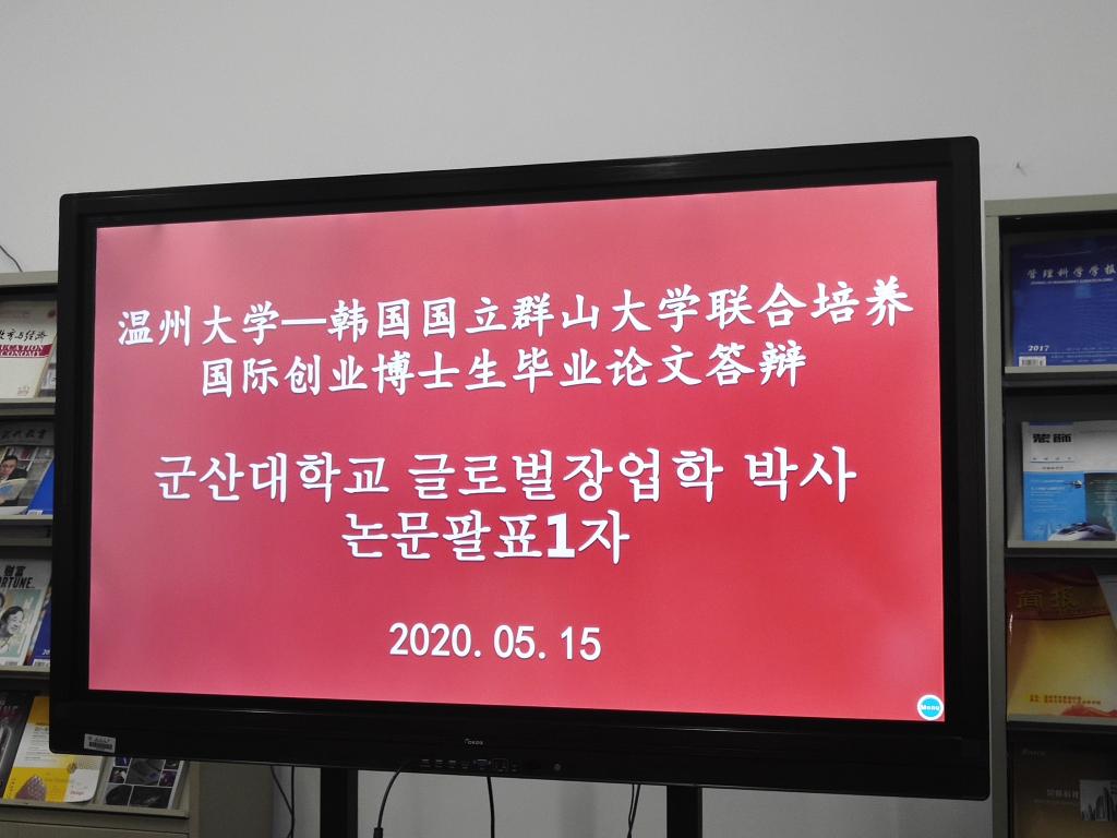 2020年5月15日,公司与韩国国立群山大学首批联合培养的国际创业学博士生论文答辩会在北校区行政楼504顺利举行。