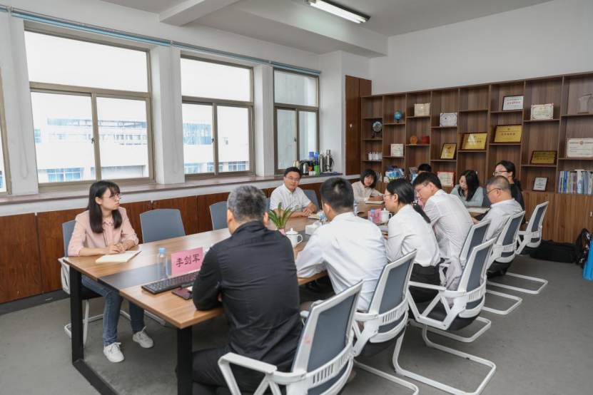2020年10月15日,瓯海区委常委、副区长楼了凡莅临公司调研指导,太阳集团tyc4633副经理施永川、国际处副处长郑婷和太阳集团tyc4633教师代表参与交流座谈。