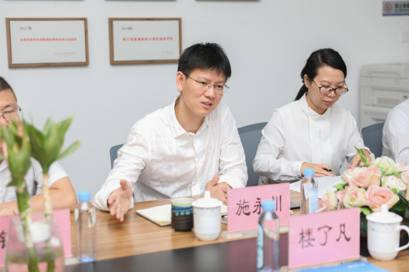 施永川介绍了公司创新创业教育工作概况和发展历程,阐述了公司创业课程体系、创业人才培养、创业基地建设等方面取得的成果,并重点介绍了创业教育国际化工作。他表示,希望瓯海区委区政府加强对公司老员工创业工作支持,建立定期交流工作机制,拓展公司服务地方融入地方发展的平台。