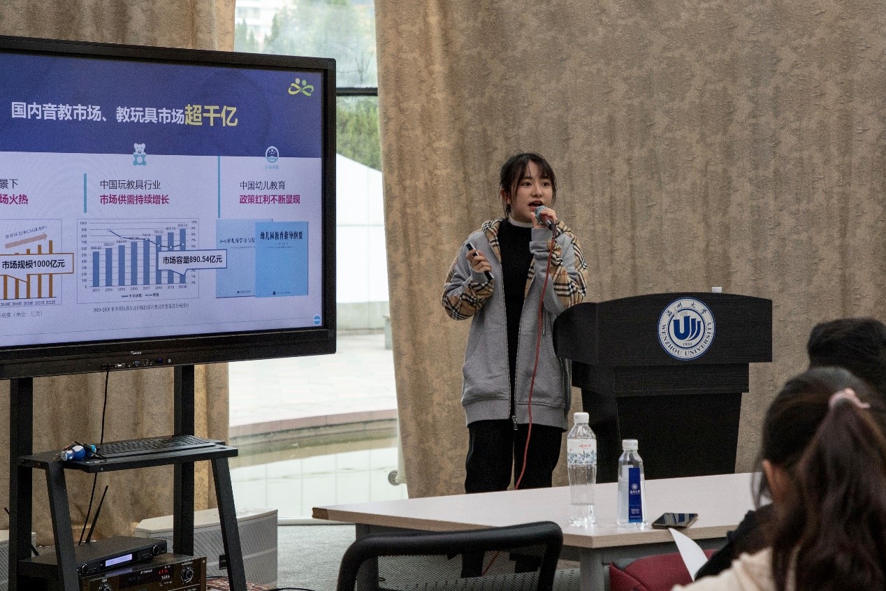 薛文琪以“从零到有‘互联网+’备赛心路历程”为主题,给大家展示了童玩童趣项目的路演PPT,从项目痛点、市场分析、商业模式、项目产品等多个方面,总结和分析了如何打造一个好的创业项目。她同时分享了个人参赛以来的种种心路历程,她认为参加大赛必须要培养耐心,要相信付出的努力是会有回报的。