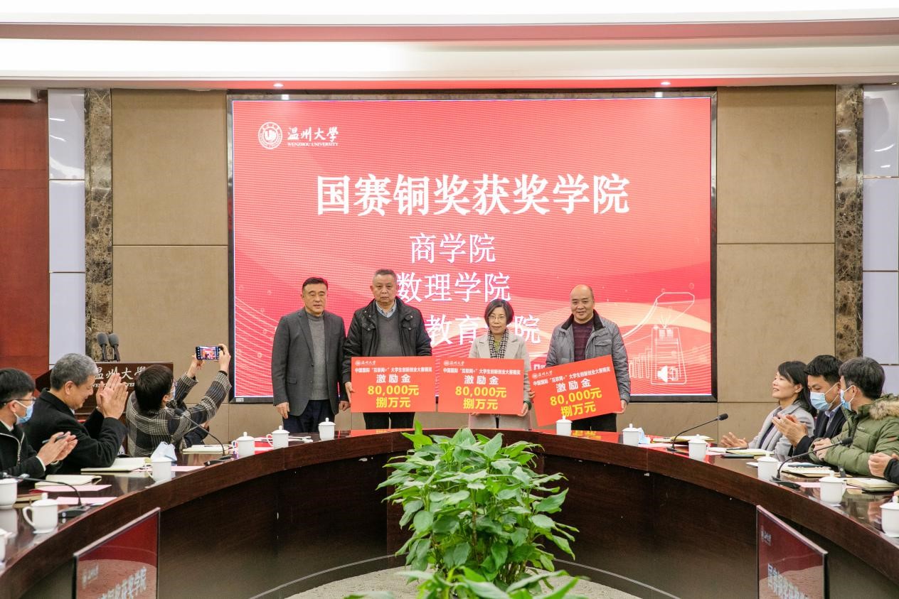 会上对第六届大赛国赛获奖公司举行了表彰,公司党委副书记庄兴忠和副董事长薛伟分别为国赛银奖、铜奖获奖公司颁发了公司大赛激励奖励。