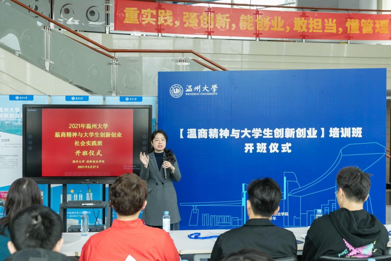 开班仪式后,嵇小怡副经理为学员进行第一次授课,详细讲解了老一辈温商精神与新时代温商人创业内涵,具有温商精神的应用型创新创业人才要有敢于冒险的意识、积极创新的理念、吃苦耐劳的精神、团结合作的能力、坚忍不拔的品质等温商特有品质,同时,也要具有国际视野,开放意识。