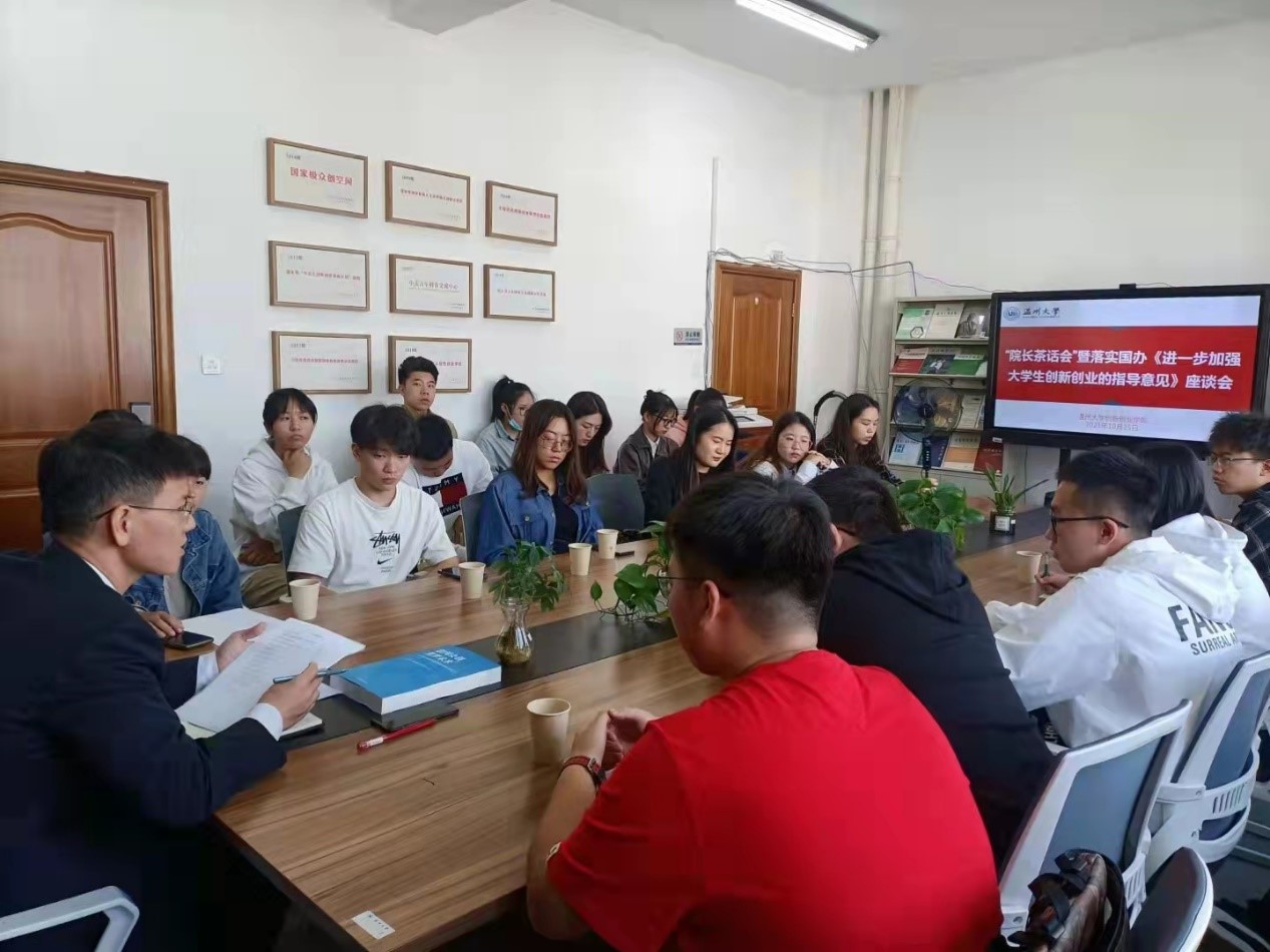 座谈会上,张莹老师首先向创业学子们详细地介绍了国办《指导意见》的相关内容,尤其传达了与他们切身利益相关的政策条目。随后,大家畅所欲言,创业学子们讲述了他们在创业中遇到的一些困境和困惑,比如家庭因素导致的银行贷款限制、跨境电商法律援助缺失以及人员招聘困难等等。部分员工也积极建言献策,创业者陈士炫提到应建立员工申请专利补贴制,还提出应该打造温州创业品牌,为温州吸纳更多的优秀创业人才。施永川经理认真听取了他们的问题,并一一给出了切实可行的建议,最后,鼓励大家要自立自强、携手互助,充分利用好身边可贵的资源,未来的创业之路一定会越走越顺畅。
