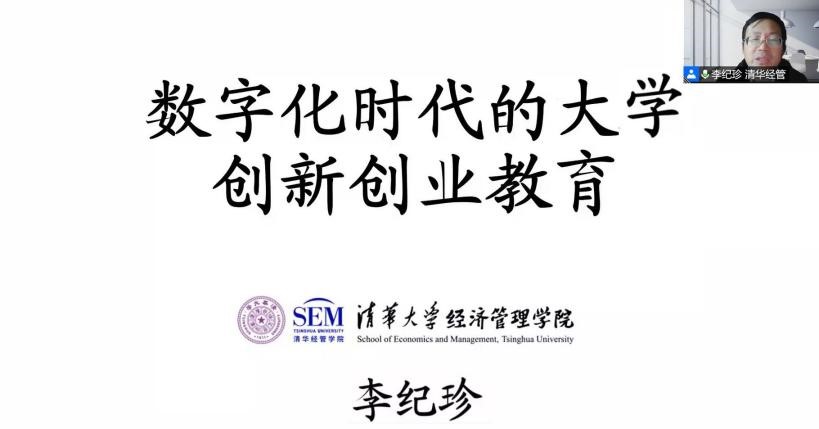 开班仪式后,清华大学经管公司副经理李纪珍教授作《数字化时代的大学创新创业教育》主题讲座。他详细介绍了清华大学创意创新创业教育平台“x-lab”是如何开展大学创新创业教育,形成具有公益性、开放性、生态性的闭环式生态系统。他提出,双创教育的追求在于追求价值创造和影响力培养创新和领导力人才。李纪珍教授还详细介绍了清华x-lab教育路线图、构建三创教育平台的尝试、课程教育体系和国际化教育,并用不同实际案例展示了x-lab了实践成果。他提出,在技术变革的时代,大学教育应“有教无类、因材施教”,才是大学发挥更大价值、体现大学更强生命力的地方。