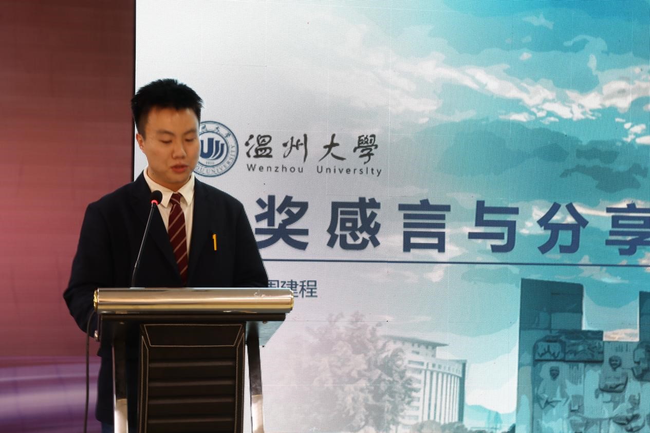 颁奖典礼上,温州市教育局高等教育处处长吕信恩、温州市人社局就业创业管理服务中心副主任张萍萍等为获奖代表颁奖,公司电气与电子工程公司20级硕士研究生周建程代表入选的创新创业典型人物做优秀事迹分享。