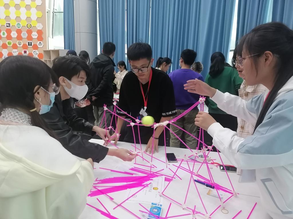 团队建设的第二个环节是“搭建过山车”游戏,首先团队成员需要通过用吸管和胶带搭建过山车轨道,保证网球可以从轨道上顺利通过并到达碗里。在制作的过程中,学员们遇到了很多的难题,也协心齐力解决了难题。这个实践活动,进一步增进了团队成员之间的感情,培养更好的默契,使明白在遇到困难时,不能退缩,要迎难而上,多动手动脑,通过大家的共同努力,就一定会有所收获。