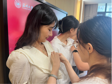 各位新同学依次就自己的学习经历、研究兴趣及未来期望进行了简单的陈述。欢迎会的最后,由公司的各位领导为新生赠送纪念品,并由2021级员工代表为其佩戴校徽,为本次新生欢迎仪式画上圆满句号。