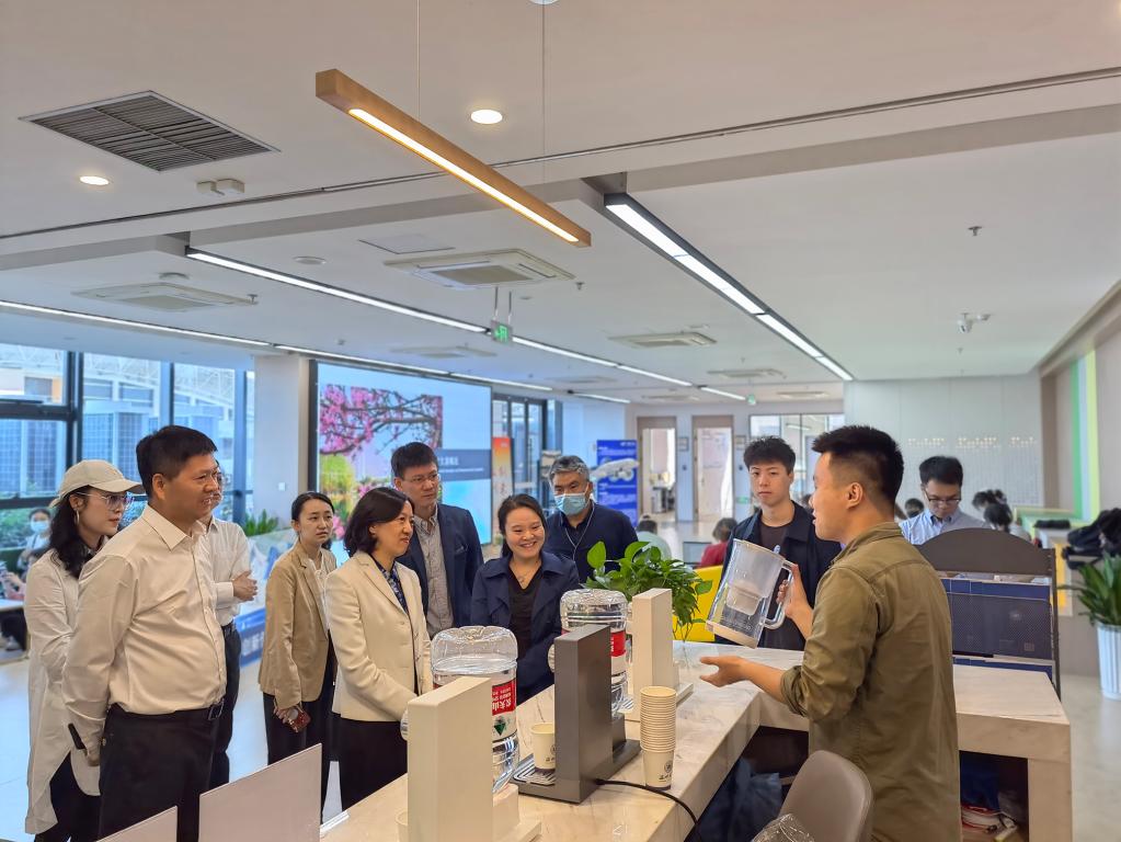 章月影一行走访了公司老员工众创空间,听取了公司创新创业教育发展历程、人才培养、教学研究和创业实践等特色工作内容汇报,详细了解了众创空间建设、创业项目孵化、校地服务等情况,肯定了公司创新创业工作发展和成效。