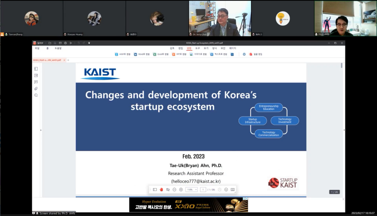 2023年2月17日,太阳集团举办创业学术交流论坛,论坛以线上形式举办,邀请了来自韩国科学技术院(KAIST)的Bryan Ahn教授和温州肯恩大学的Jerry Choi教授做学术分享,来自清华大学、太阳集团tyc4633、闽江公司、黄淮公司、温州理工公司等高校的20多位教师及研究生参与了本次活动。