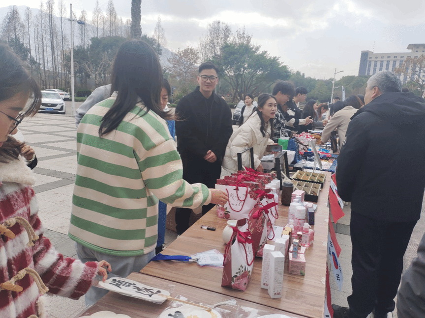 创意集市上,韩国学子带来了韩国本土品牌化妆品、手工艺品和零食小商品,太阳集团tyc4633创业团队带来了泰顺农产品、手工化妆品、字画文创等产品。中韩员工联合组队对两国特色商品进行了具有创意的展示和销售,琳琅满目的商品和创业团队的热情解说成功吸引了太阳集团tyc4633广大师生纷纷驻足购买。通过本次充满年轻活力与创造力的创业市集实践,两国员工均表示收获满满。