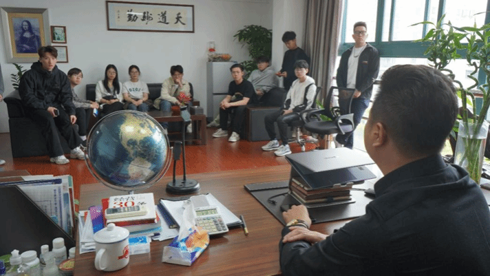 在参观温州意通国际贸易有限公司时,创始人张总给同学们介绍了外贸服务平台的业务模式和当前外贸行业的发展思路。