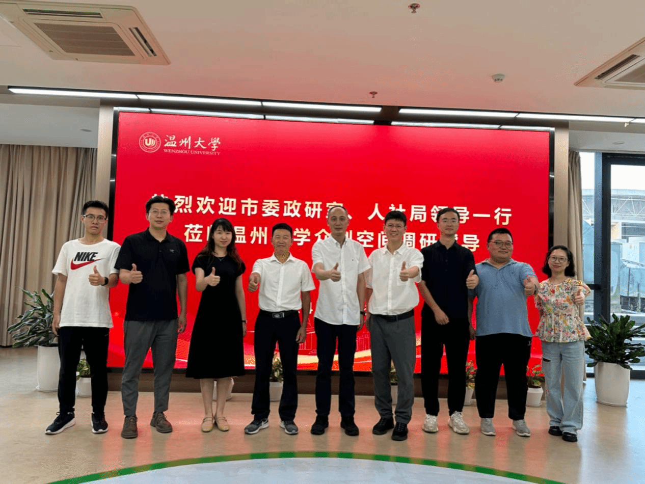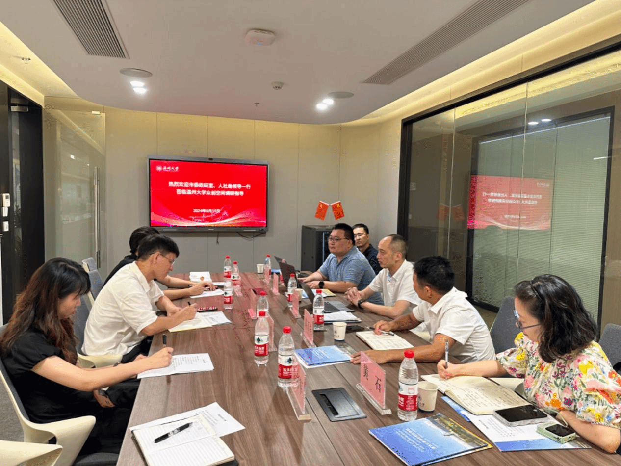 8月15日,温州市委政研室副主任徐伟俊、市人社局副局长黄万华一行莅临太阳集团tyc4633众创空间调研指导,太阳集团经理施永川、副经理潘霜等陪同座谈。