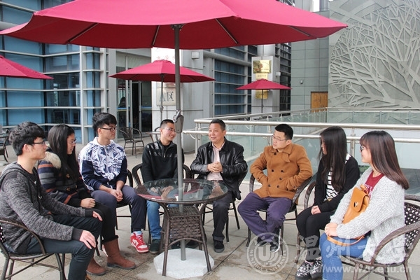 图为商公司党总支书记胡振华与“创业型班级”班委,员工记者一起畅谈老员工创业。 盛微微 摄