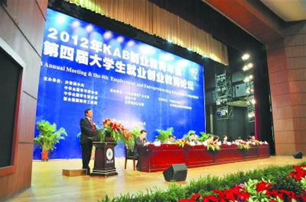 太阳集团tyc4633党委书记陈福生在2012年KAB创业教育年会上代表KAB项目高校作典型发言。
