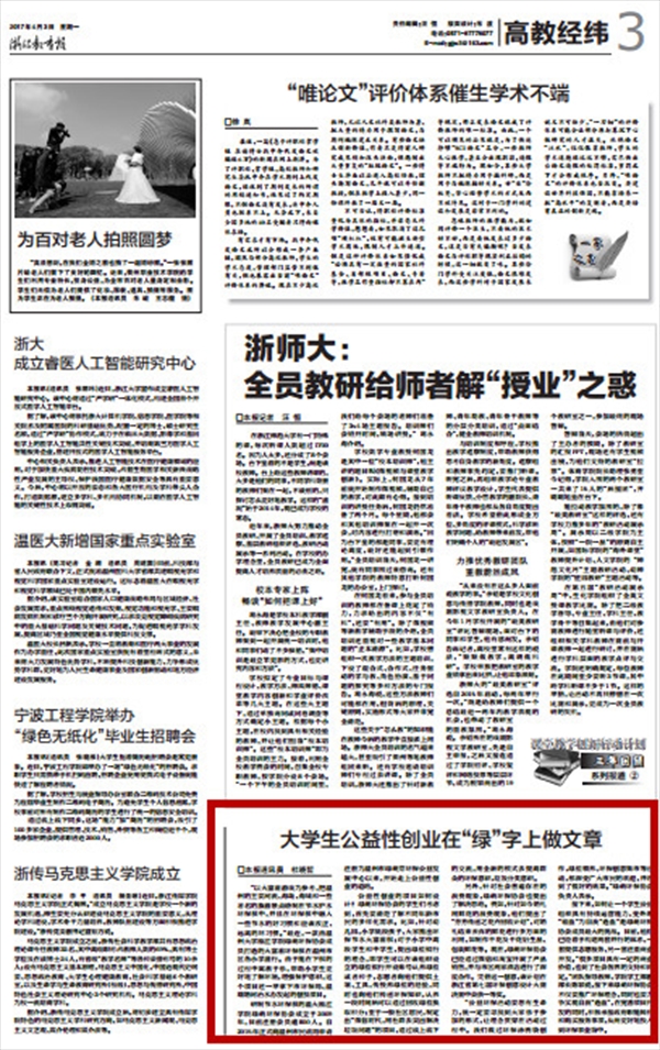 浙江教育报:老员工公益性创业在“绿”字上做文章