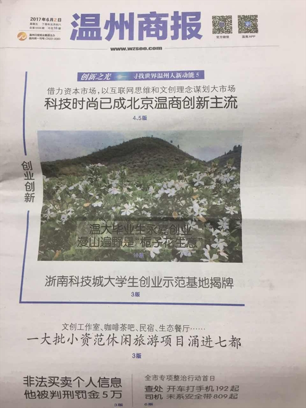 虽然遭遇了天灾,但邵超逸靠着栀子产业带动了当地低收入农户约5000人次的就业,也带动了低收入农户集中村的集体经济发展。2015年7月,邵超逸注册了“有乔”商标,同年12月,他被评为温州市“百龙工程”农业龙头企业。