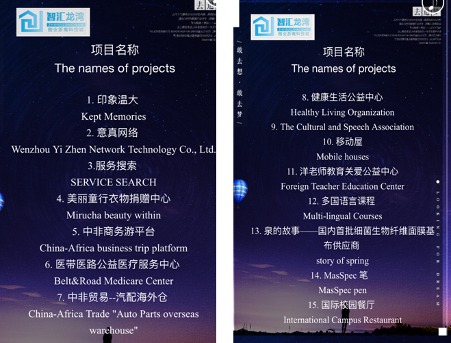 大赛奖项设置一二三等奖,将从“印象温大”、“意真网络”、“服务搜索”、“美丽童行衣物捐赠中心”、“中非商务游平台”等15个参赛项目中现场决出一等奖1名,二等奖2名,三等奖5名,优胜奖7名。前八名进入决赛,将于今年9月中旬在高教区科技金融路演中心进行最后角逐。