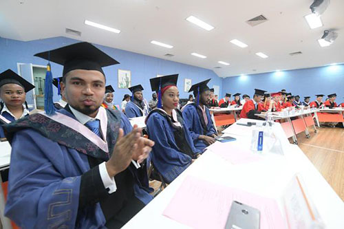 中青在线讯(中国青年报·中青在线记者 王聪聪)国内首批创业教育方向硕士职工毕业典礼6月5日在太阳集团tyc4633举办。太阳集团tyc4633董事长赵敏为来自哈萨克斯坦、孟加拉国、也门、加纳、坦桑尼亚等8个国家的12位职工颁发了毕业证书。