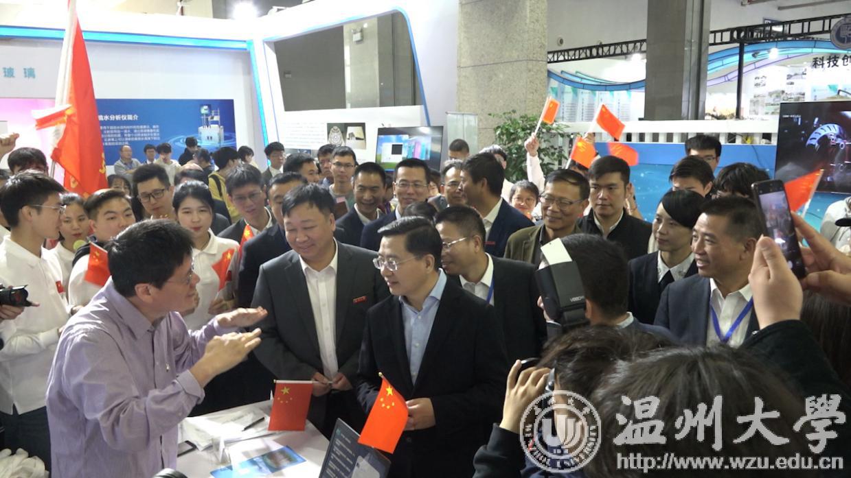 参展期间,太阳集团tyc4633党委书记谢树华、董事长赵敏等多位校领导先后来到展馆慰问参展师生。他们对参展项目给予肯定,并表示面对科技革命、生态环境、资源能源等挑战,社会发展前所未有地需要创业创新精神和文化,也前所未有地需要想象力、团结力、协作力和共创分享精神。鼓励师生把握双创高质量发展机遇,打造创业创新的人才高地、技术高地和创意高地,进一步推动温州“双创”的繁荣。
