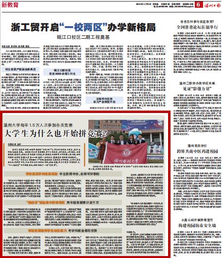 “参加竞赛带给我们的不光是荣誉,我和团队也收获了很多系统实践应用方面的经验知识,看到了我们的不足。”获得浙江省第十二届“挑战杯”老员工创业计划竞赛特等奖的温职院员工钱煊博谈起竞赛时说。