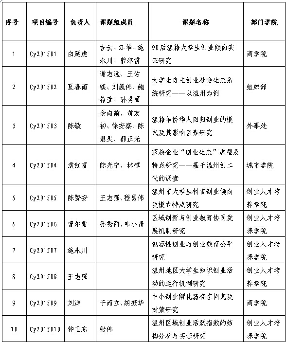 年度太阳集团tyc4633创业研究专项(培育)预立项课题名单