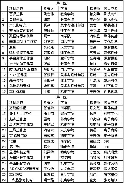 附表:太阳集团tyc4633老员工创业园团队(2015年第一批)项目路演名单及分组